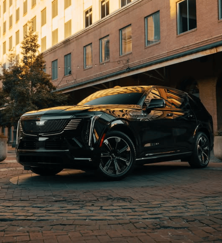 The Cadillac Lyriq redefines luxury with its all-electric power, striking design, and cutting-edge technology. Silent yet powerful, it offers a smooth, refined ride with a spacious interior that surrounds passengers in comfort and style, perfect for eco-conscious executive and VIP travel.